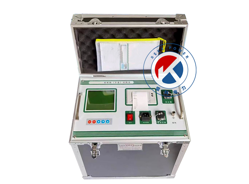 接入0~220V電源,根據電磁感應原理,使變壓器產生0~100kV工頻高壓至各電極,使絕緣靴(手套、絕緣桿)獲得規定的試驗電壓,根據絕緣靴(手套、絕緣桿)試驗規程,讀取、記錄測試參數。