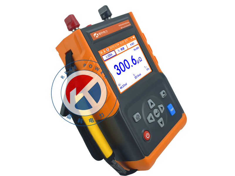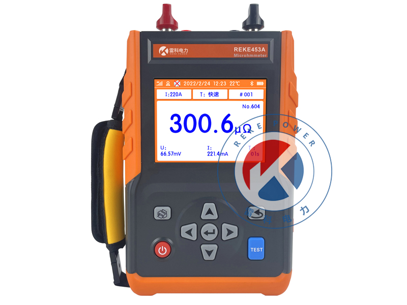 REKE-453A手持式回路電阻測試儀(又稱微歐計(jì))是一款專為測量高壓開關(guān)、斷路器接觸電阻及金屬導(dǎo)體回路電阻而設(shè)計(jì)的精密儀器。內(nèi)置高精度A/D轉(zhuǎn)換器與程控電流源,可輸出高達(dá)100A的無紋波直流電流,支持多檔位調(diào)節(jié)與定時(shí)連續(xù)測試。具備開路、過熱等多重保護(hù),抗干擾能力強(qiáng)。采用5.6寸彩色LCD屏,操作簡單,便于攜帶,支持?jǐn)?shù)據(jù)存儲與藍(lán)牙APP連接,可實(shí)現(xiàn)GPS定位、數(shù)據(jù)上傳、報(bào)告生成等功能,顯著提高現(xiàn)場檢測效率。